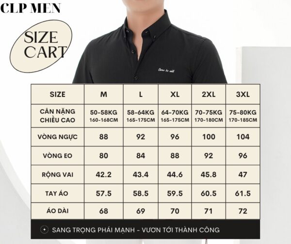 Bảng size áo sơ mi nam dài tay